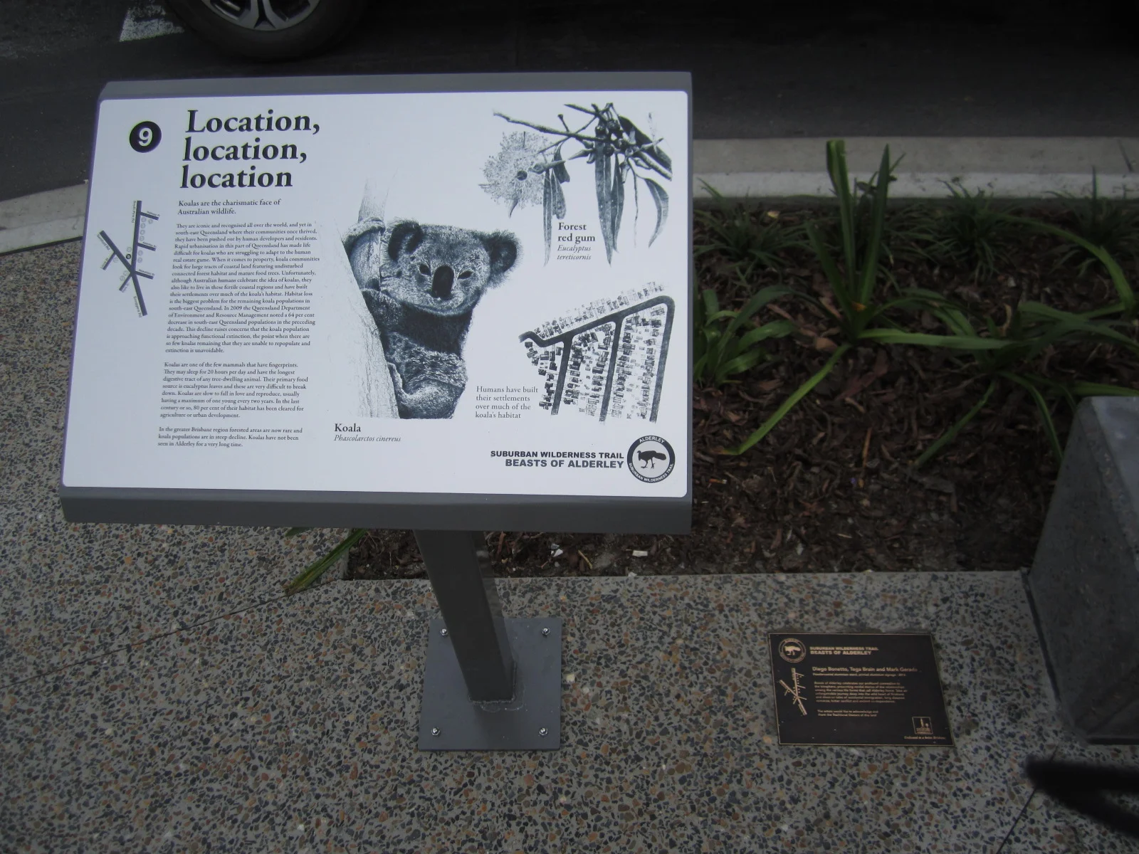 The Beasts of Alderley is a permanent public artwork made up of 12 illustrated panels, each describing organisms with whom we cohabit. The project reminds us that urban environments are more than just human worlds and are a part of the dynamic, evolving, complex ecosystems. From the tiny inhabitants of the human digestive tract through to the impressively large mounds of leaf litter made by the famous brush turkey, the Beasts of Alderley Wilderness Trail passes through the fascinating habitats and describes the controversies that go with them. With an exciting itinerary for the adventurous, this project rethinks what is wilderness.